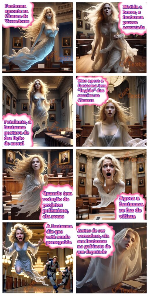 Antes de ser vereadora, ela era fantasma no gabinete de um deputado. Gostava de dar lição de moral em políticos, mas agora foge das sessões quando tem algum projeto polêmico para ser votado. Criticada, agora a fantasma alega estar sendo perseguida.